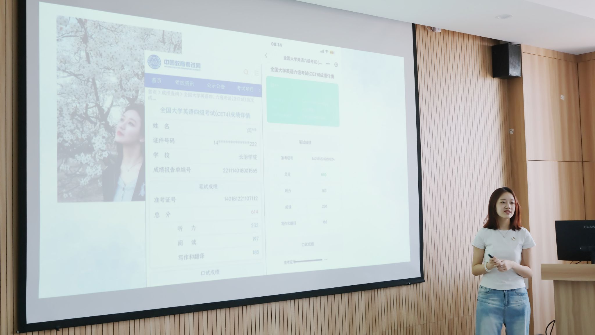 外语系英语2102班闫佳悦以《砺学逐光——专业求索路上的破茧与反哺》为题,深情讲述了自己专业求索的破茧历程。作为当前在校生中英语四六级考试的“双峰”登顶者,她将宝贵的备考经验凝练成可复制的“星火”,无私点燃在后来者的求知路上,生动彰显了知识深耕与互助回馈的价值共振。
